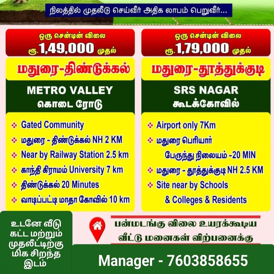 உங்களுக்கும் , உங்கள் பிள்ளைகளுக்கும் , உங்கள் பிள்ளைகளின் பிள்ளைகளுக்கும் உடனே வீடு கட்ட மற்றும் முதலீட்டிற்கு மிக சிறந்த இடம். Minimum & Medium Price No Broker Charge